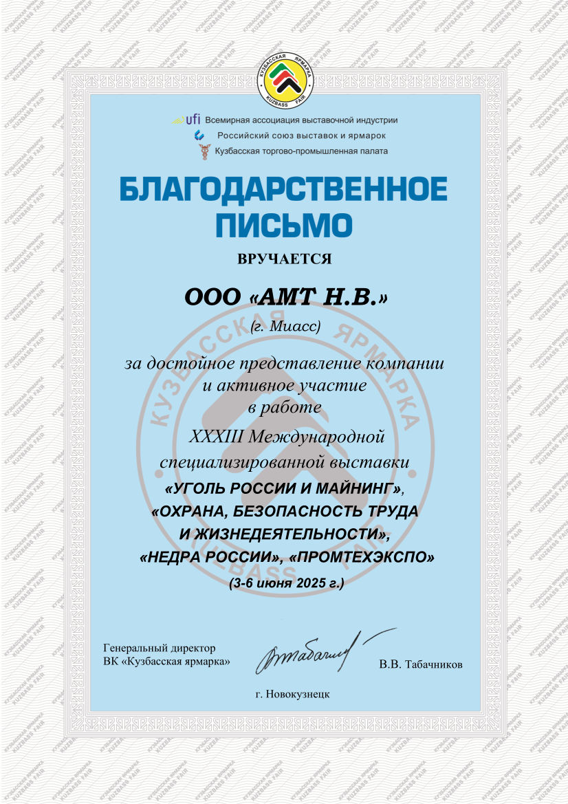 Благодарственное письмо АМТ НВ